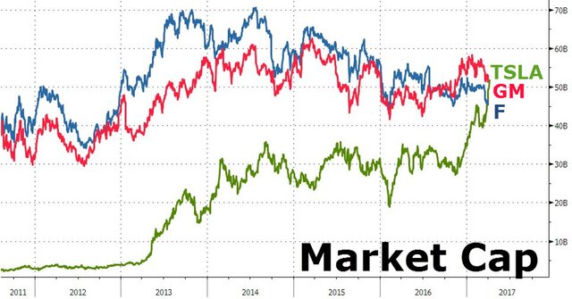 В 18:05 по московскому времени цена акций Tesla выросла на 1,8% и составила $304. Общая рыночная капитализация компания увеличилась до $53,06 млрд. В то же время акция GM торговалась по цене $34,40 за штуку, а капитализация составляла $49,8 млрд. Таким образом, Tesla стала самым дорогим автопроизводителем в США по объему капитализации.