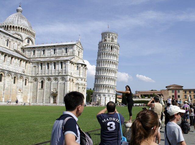 Пизанская башня – это очень туристическое место, и каждый турист стремится сделать фото, как будто он или она удерживает башню от падения.