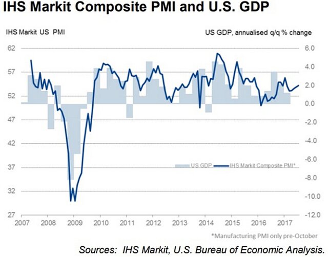 "Темпы роста остаются скорее скромными, чем впечатляющими. Результаты исследования исторически согласуются с ростом ВВП примерно на 2% в пересчете на годовые темпы, но есть признаки того, что в ближайшие месяцы рост может ускориться", - сообщил главный экономист Markit Крис Уильямсон.