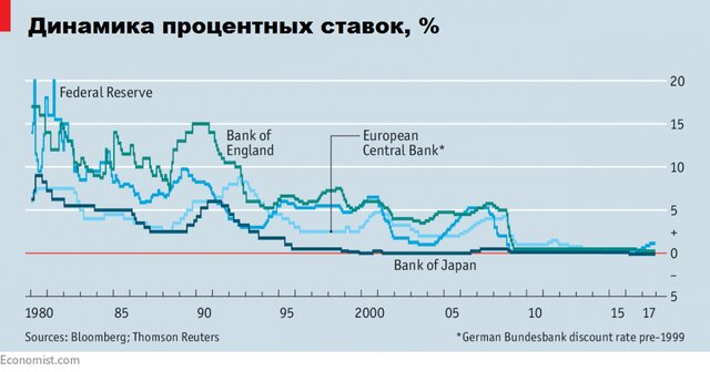 Однако во время финансового кризиса и после сорока лет снижения процентных ставок и инфляции произошло неизбежное. Ставки, столь искусно управляемые центральными банками, достигли нулевого уровня, не оставив мегарегуляторам иного выхода, как воспользоваться непроверенными альтернативными мерами.