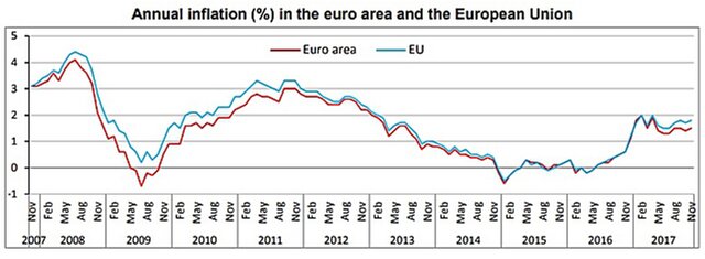 Потребительские цены в Евросоюзе в ноябре выросли на 1,8% в годовом выражении и на 0,1% по сравнению с предыдущим месяцем.