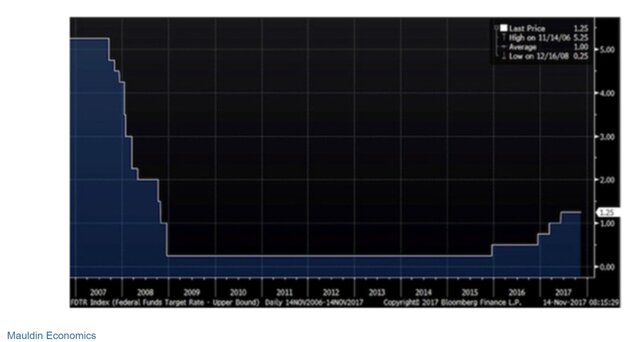 Сегодня мы боимся повышения ставок вполовину от прошлого сокращения, растянутого на пять или более лет. Стоит отметить также, что это грандиозное сокращение ставок не смогло предотвратить крах банковской системы.