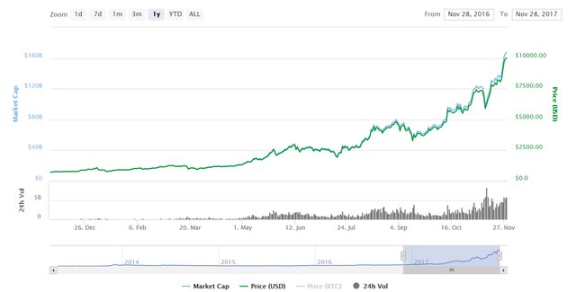 Предыдущую отметку в $9 тысяч курс биткоина преодолел утром 26 ноября, при том, что на открытии биткоин стоил $8763. Таким образом, рост составил $280. Установив рекорд, биткоин опустился до $8932. На прошлой неделе курс биткоина превысил $8 тыс. на фоне тестирования системы продажи фьючерсов на Чикагской бирже CME Group и ожидания притока на рынок институциональных инвесторов.
