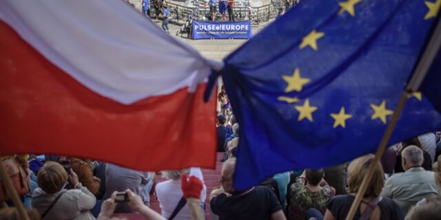 Польша раздражает ЕС из-за проводимых судебных реформ, с которыми ЕС не согласен, а также тем, что Польша (наряду с Венгрией и Чехией) отказывается принимать мигрантов.