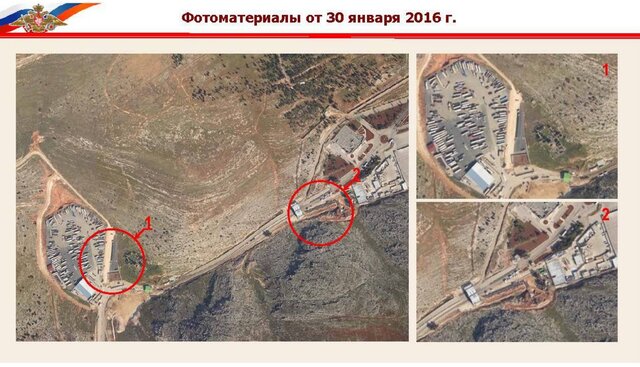 Игорь Конашенков подтвердил свои заявления, сделанные в рамках пресс-конференции 4 февраля 2016 г., спутниковыми снимками. В частности, он отметил, что для переброски помощи из Турции для боевиков в Сирии используются контрольно-пропускные пункты в районе Рейханлы-Сармада, представив спутниковые снимки данного района.
