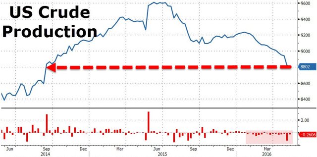 Снизились также запасы дистиллятов и бензина. Ну а окончательную уверенность "быкам" придали данные о добыче: она в Штатах падает уже шестнадцатую неделю подряд.