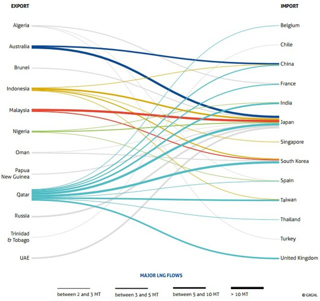 Катар остается ведущим поставщиком СПГ по гибким контрактам, на его долю в 2015 г. приходилось 32% мировой торговли сжиженным природным газом. Однако, как отмечает глава GIIGNL, в будущем США могут составить конкуренцию Катару, нарастив поставки СПГ. Второе место по объему экспорта СПГ в прошлом году заняла Австралия, опередив Малайзию, которая в 2014 г. была вторым по объему поставок экспортером СПГ.