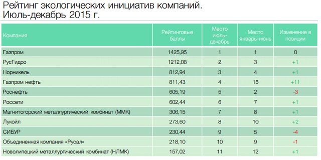 Институт современных медиа (MOMRI) и телеканал "Живая планета" составили рейтинг экологических инициатив российских компаний топливно-энергетического и металлургического секторов экономики за второе полугодие 2015 года.