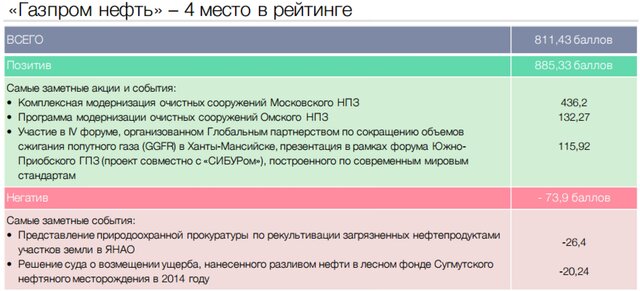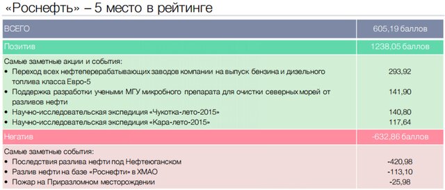 По итогам анализа публикаций в СМИ за июль-декабрь 2015 г. появились компании, имеющие отрицательный итог рейтинговых баллов: компания "Сургутнефтегаз" в связи с конфликтом на озере Имлор (ХМАО) и компания "Транснефть" в связи с разливом и возгоранием нефтепродуктов на Москве-реке.