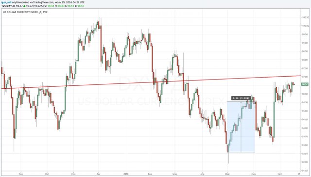 В мае, например, американская валюта демонстрировала рост. Индекс доллара к корзине шести основных валют прибавил порядка 3,2%, да и сами трежерис выросли в цене.