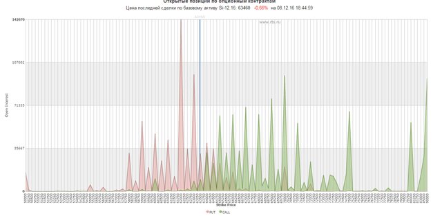 С другой стороны, столь явных "ограничителей" нет, однако видно, что все более или менее крупные барьеры начинаются от страйка 65. Таким образом, можно смело сделать вывод, что экспирация пройдет где-то в промежутке между 63 и 65 руб. В общем, рынок уже давно в этот диапазон пришел и, судя по всему, в нем так и останется.