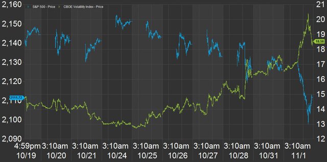 Неопределенность ускорила рост VIX, который превысил 20 пунктов, что является максимумом с 12 сентября, когда S&P500 упал ниже психологически важной отметки в 2100 пунктов.