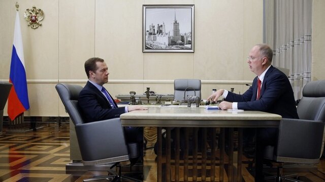 Премьер-министр РФ Дмитрий Медведев выслушал доклад генерального директора Российского фонда прямых инвестиций Кирилла Дмитриева об основных направлениях работы, а также крупных соглашениях, заключенных фондом в последнее время.