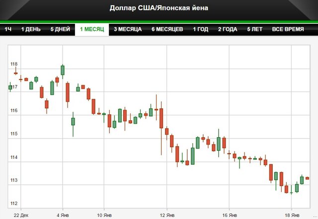 Курс доллара к иене составил 113,26 иены/$1. Ранее курс достиг отметки 112,57 иены/$1 на торгах в Азии - минимального уровня с 30 ноября. Во вторник вечером на торгах в Нью-Йорке курс составлял 112,62 иены/$1.