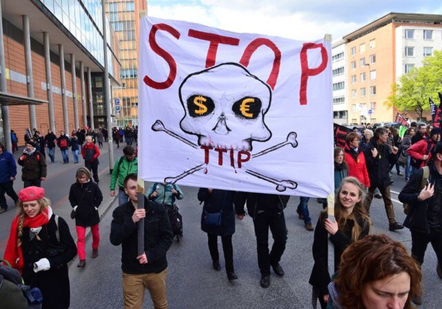 Акция протеста в Германии против Трансатлантического торгового партнерства, 2016 г. Фото: John MacDougall / AFP