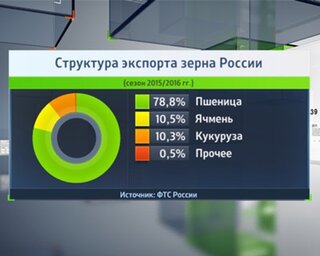 Экспорт в 2015-2016 сельхозгоду составил 33,9 млн тонн зерна, в том числе 24,6 млн тонн пшеницы.