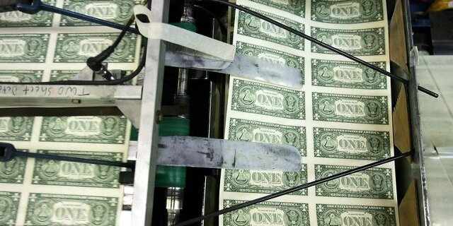 Но опять же, "печать" денег не создает залог или доход, необходимый для обслуживания долга. Печатание денег сродни добавлению нуля к валюте. Каждая банкнота в $1 становится банкнотой в $10. Действительно ли вы в десять раз богаче от того, что центробанк добавляет ноль к каждой банкноте? Нет, потому что буханка хлеба за $5 теперь стоит $50.