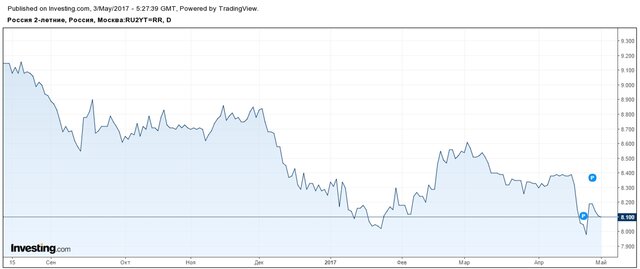 По двухлетним ОФЗ доходность несколько выше - все еще превышает 2%, однако здесь также наблюдается позитивная динамика, хотя и не столь явная.