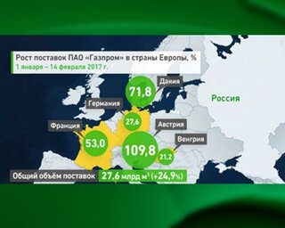 Повышенный спрос на российский газ отмечен в Германии (рост на 18,7%), Австрии (на 68,5%), Дании (на 30,5%).