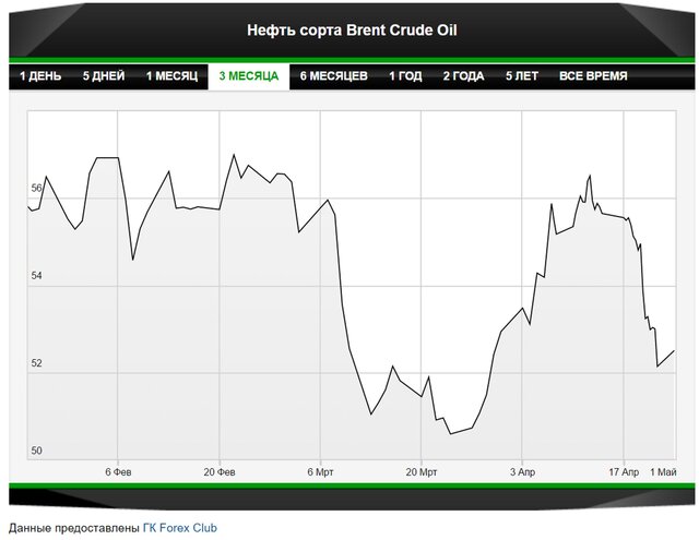 В середине недели, впервые за апрель, баррель Brent падал до $52,58 - после данных Управления энергетической информации США (EIA) о выходе на 20-месячные максимумы суточной добычи нефти в 9,25 млн баррелей. При том, что запасы нефти в Соединенных Штатах, как сообщило EIA в среду, за неделю, завершившуюся 14 апреля, снизились на 1,03 млн баррелей (до 532,34 млн баррелей) при прогнозируемом сокращении на 1,47 млн баррелей.