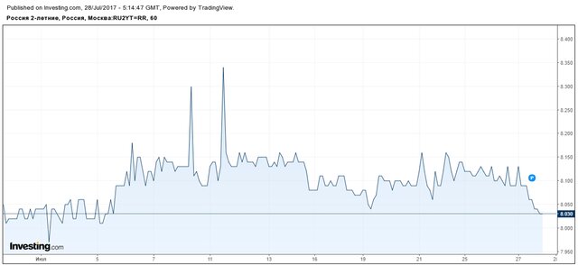 Кстати, на долговом рынке также нет четких сигналов. Доходности 2-летних ОФЗ в последние дни хотя и снижаются, но это связано скорее с ростом цен на нефть и укреплением рубля, а не с ожиданием снижения ставки.