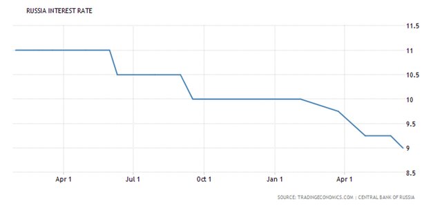 Мы уже неоднократно упоминали резкий скачок цен на плодоовощную продукцию, что привело к росту инфляции до 4,4%. Поскольку ЦБ основной своей задачей видит именно достижение инфляции на уровне 4%, то ждать смягчения денежно-кредитной политики не приходится.
