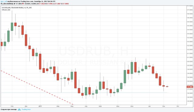 При благоприятном стечении обстоятельств возможно даже обновление новых минимумов по паре доллар/рубль. Но здесь многое будет зависеть от динамики доллара и евро на внешнем рынке Forex.