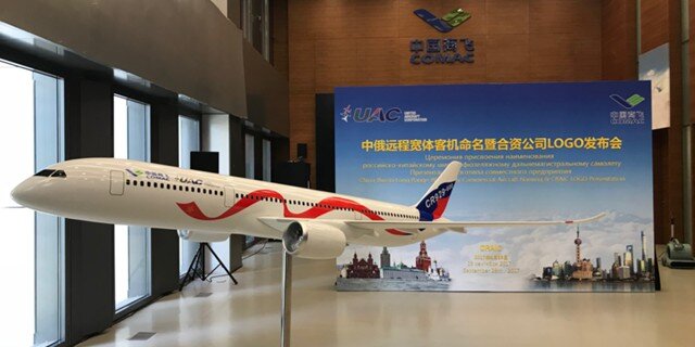 ПАО "Объединенная авиастроительная корпорация" и "Китайская корпорация гражданского авиастроения" (COMAC) в пятницу объявили наименование широкофюзеляжного дальнемагистрального самолета нового поколения, а также презентовали логотип и ливрею лайнера.Москва, 29 сентября - "Вести.Экономика". ПАО "Объединенная авиастроительная корпорация" (ОАК) и "Китайская корпорация гражданского авиастроения" (COMAC) в пятницу объявили наименование широкофюзеляжного дальнемагистрального самолета нового поколения (ШФДМС), а также презентовали логотип и ливрею лайнера.