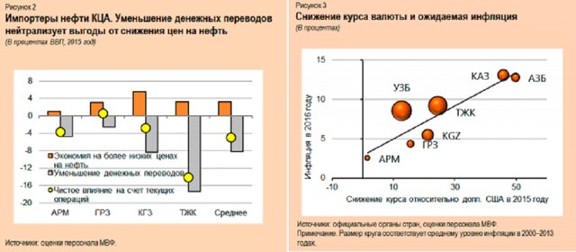 Положительное влияние этого фактора на потребление частично нейтрализовалось уменьшением денежных переводов из России (являющихся важным источником доходов в Армении, Кыргызской Республике и Таджикистане, где на денежные переводы в 2015 году приходилось от 9 до 32% ВВП).