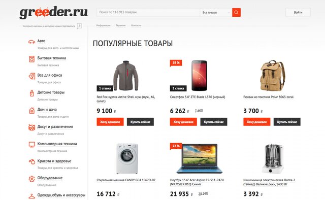 Система интернет-покупок Greeder.ru работает по принципу аукциона на понижение. Ее механизм прост: покупатель приходит на сайт, видит среднерыночную цену нужного товара и, отталкиваясь от нее, предлагает более низкую, приемлемую для него цену.
