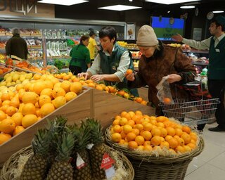 Прирост цен на плодоовощную продукцию в среднем составил 0,5%, в том числе на помидоры - 5,2%, капусту белокочанную - 4,6%, морковь - 1,8%, яблоки - 0,6%. В то же время огурцы свежие стали дешевле на 6,4%.