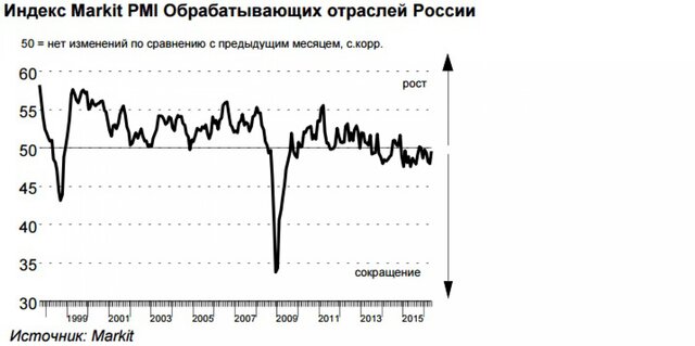 "Результаты майского исследования продолжают разочаровать российских производителей в 2016 г. в условиях дальнейшего ухудшения рыночной конъюнктуры. Головной показатель PMI указывает на спад в отрасли на протяжении шести месяцев подряд.