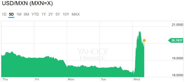 Мексиканский песо. График: finance.yahoo.com