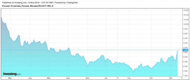 Так, например, доходность десятилетних ОФЗ, которая еще в сентябре достигала 8%, сейчас выросла уже практически до 9%.