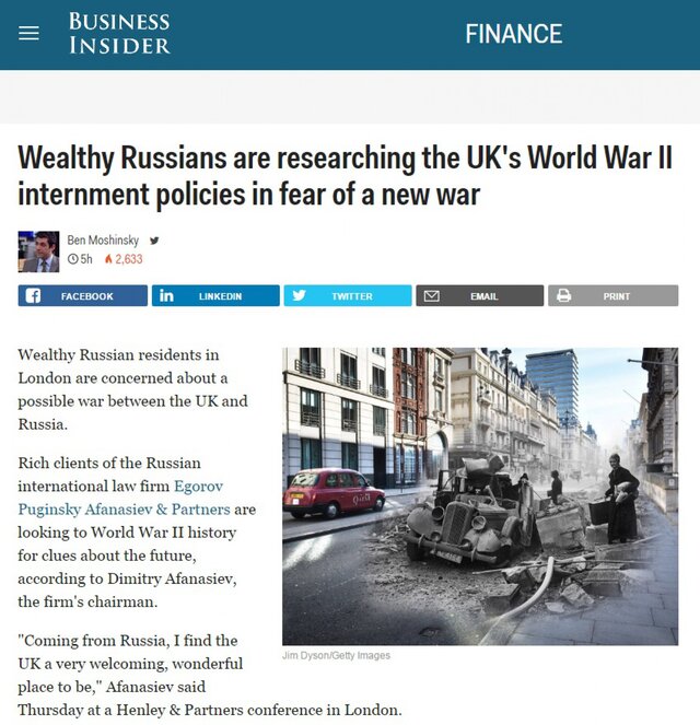 Поэтому наши клиенты в Лондоне интересуются: "В случае войны между странами НАТО и России, будут ли они интернированы? Сам я люблю шутки, но это серьезный вопрос".