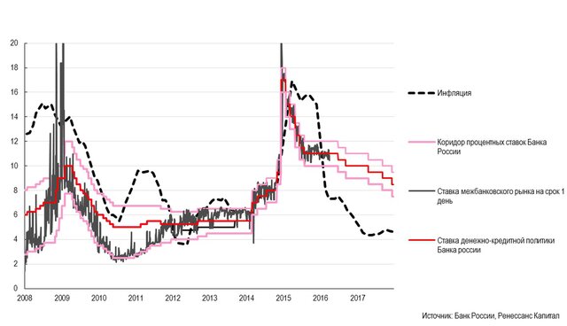 Рисунок 2. Ставки Банка России и инфляция, %