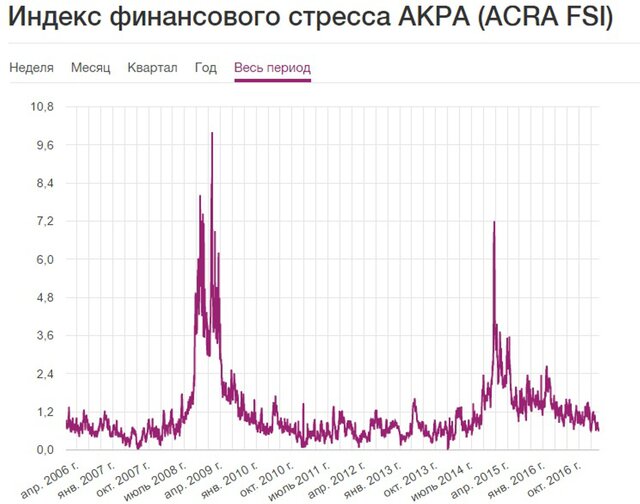 АКРА выделяет пять основных проявлений финансового стресса: неопределенность в фундаментальных ценах активов, недостаток информации о мотивах и текущем состоянии других участников рынков, асимметрия информации о качестве активов или заемщиках, "бегство в качество" и "бегство в ликвидность".