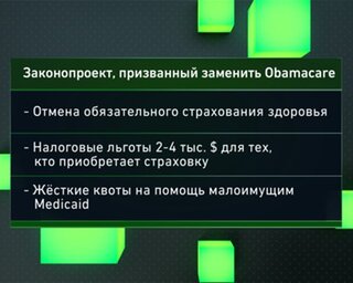 Республиканцы намерены отложить расширение системы страхования для бедных слоев населения и отменить субсидии в рамках Obamaсare за счет системы фиксированных налоговых кредитов, которые должны помочь людям приобрести частную страховку на открытом рынке.