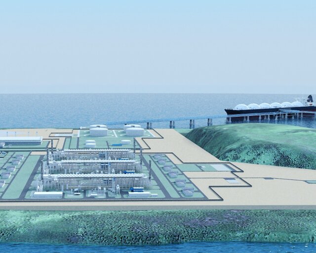 По проекту, газ с месторождения "Чайво" направят на комплекс подготовки, оттуда - в Де-Кастри, где построят завод по производству СПГ.