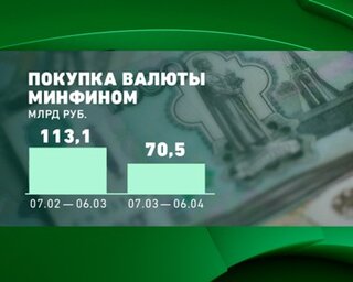 Минфин начал покупку 7 февраля и по 6 марта ежедневно покупал валюты на 6,3 млрд руб., но уже с 7 марта снизил покупку до 3,2 млрд руб. в сутки. Минфин покупает валюту на сверхдоходы бюджета, в котором заложена цена в $40 за баррель.