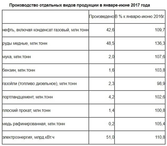 В январе-июне 2017 г. по сравнению с аналогичным периодом 2016 г. увеличилась добыча сырой нефти, природного газа, металлических руд и угля.