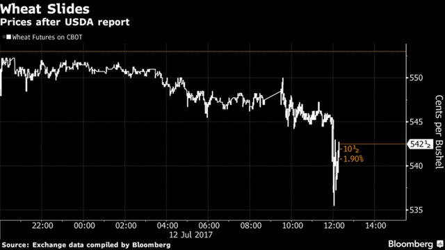 Цены на пшеницу за последний месяц выросли. Это во многом связано с засухой, которая затронула зерновые культуры в северо-американских областях. Но ущерб оказался не столь серьезным, как опасались специалисты. Базовые цены на пшеницы снизились после выхода в среду отчета Департамента по сельскому хозяйству США.
