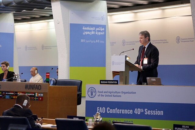 В своем выступлении на 40-й сессии Конференции Продовольственной и сельскохозяйственной организации Объединенных наций Александр Ткачев отметил, что агросектор является одним из источников выбросов парниковых газов.