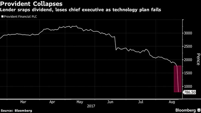 План Provident по замене работников технологиями обернулся неудачей, и компания выпустила предупреждение о прибыли для своего подразделения потребительского кредитования в июне. Во вторник Provident отказалась от выплаты промежуточных дивидендов и предупредила, что выплата дивидендов за весь год также маловероятна на фоне ухудшения показателей бизнеса по кредитованию и расследования британского регулятора в отношении его подразделения Vanquis Bank.