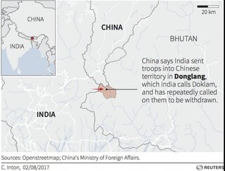 Несколько ими месяцами ранее китайские строители начали строить дорогу на территории, которую Бутан считает своей. Хотя Китай и Бутан ведут переговоры о четкой границе на протяжении десятилетий без серьезных инцидентов, крошечное гималайское королевство на сей раз обратилось за помощью к своему давнему союзнику - Индии, откуда были направлены войска, для того чтобы остановить китайских рабочих.