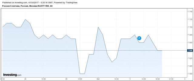 Накануне ОФЗ с различным сроком погашения торговались разнонаправленно. Доходности десятилетних бумаг немного подросли и составили 7,62%, доходности пятилетних облигаций, наоборот, снизились и практически сравнялись с десятилетками - 7,64%.
