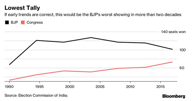 Москва, 18 декабря - "Вести.Экономика". Партия премьер-министра Индии Нарендры Моди намерена вернуться к власти в своем родном штате в ходе выборов, которые пройдут перед национальным голосованием в стране в начале 2019 г., передает Bloomberg.