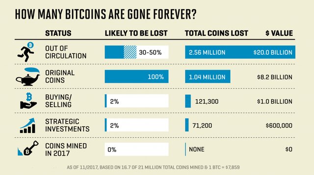 К настоящему времени до 3,79 млн биткоинов могут быть безвозвратно утеряны. Это порядка 23% от общего окличества биткоинов, стоимость каждого из которых на сегодняшний день уже приближается к $10000.