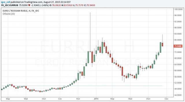 По состоянию на 11:10 по московскому времени евро уже стоит около 76 руб., а доллар 67 руб. 30 коп. От своих недавни максимумов котировки валютных пар упали примерно на 10%, ну а поскольку движения эта произошли в рамках одной недели, то такая динамика не может не привлекать внимание.