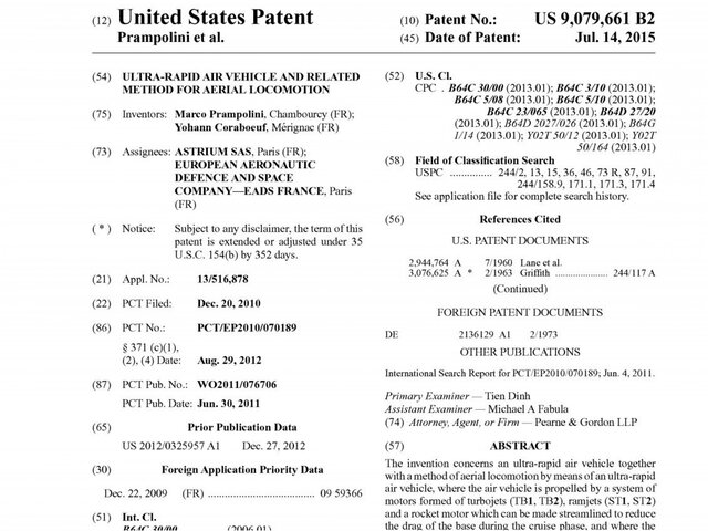 Как следует из заявки на патент, аппарат является воздушным транспортным средством, включающим в себя фюзеляж, треугольное крыло с каждой стороны фюзеляжа и систему двигателей, способных приводить аппарат в движение. Благодаря двигателем трёх различных типов судно сможет развить крейсерскую скорость более 3000 м/ч, что составляет чуть менее 5000 км/ч.